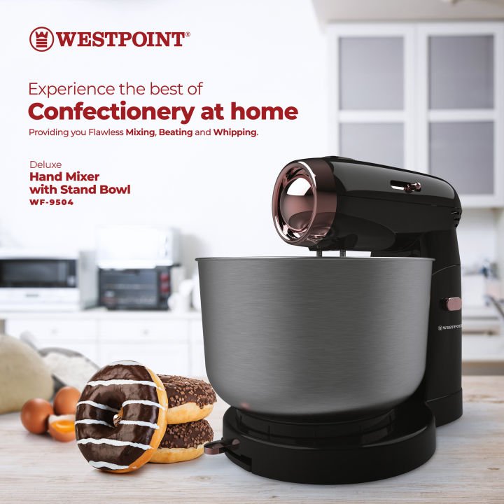 The Westpoint Deluxe Hand Mixer with Stand Bowl WF-9504 is a versatile kitchen appliance designed to make mixing, whipping, and beating easier. Here are its key features¹ ²: